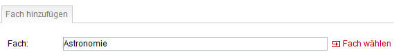 kann ein Freitext eingegeben werden. Es können beliebig viele Fach/Fächergruppen hinzugefügt werden.