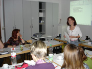 Die zweitägige Fortbildung baute auf der Lehrerfortbildung mit Dr. Esther Jansen O’Dwyer auf, die im Oktober 2009 in Weimar stattgefunden hatte. Auch im April 2010 konnten die Thüringer Berufsschullehrkräfte von Schweizer Know-how profitieren, diesmal präsentiert von Wilma Willi. Frau Willi, die mit zu den ersten Teilnehmenden im Projekt „bi.li – Zweisprachiger Unterricht an Berufsschulen“ im Kanton Zürich gehörte und ihren Unterricht an der Berufsschule Bülach bereits seit mehreren Jahren bilingual gestaltet, gab viele ihrer praktischen Erfahrungen weiter. Die Veranstaltung ging ein auf Methoden, die guten bilingualen Unterricht kennzeichnen, Chancen und Möglichkeiten, mit dem bilingualen Unterricht die kommunikative Kompetenz der Auszubildenden zu erhöhen und fokussierte dann auf Hörverstehen im bilingualen Unterricht. Zugleich bot die Fortbildung das Podium für die Erarbeitung bilingualer Sequenzen für den eigenen Unterricht in fächerspezifischen Gruppen.