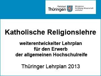 Das Fach Katholische Religionslehre wird als ordentliches Lehrfach von der Katholischen Kirche und dem Freistaat Thüringen gemeinsam verantwortet und ist schulisches Pflichtfach gemäß § 46 Thüringer Schulgesetz. In seiner konfessionellen Prägung ist es auch offen für alle Schüler, unabhängig von ihrer religiösen und weltanschaulichen Bindung. Katholischer Religionsunterricht findet in Thüringen unter sehr unterschiedlichen Voraussetzungen statt. Sie reichen vom Unterricht im Klassenverband bis zu schulart- und klassenstufenübergreifenden Lerngruppen.