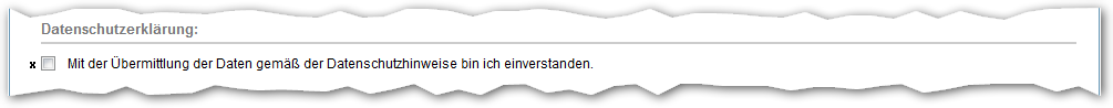 aufrufen können. Wenn Sie der Übermittlung zustimmen, setzten Sie entsprechend bei "Mit der Übermittlung der Daten gemäß der Datenschutzhinweise bin ich einverstanden." den Haken.
