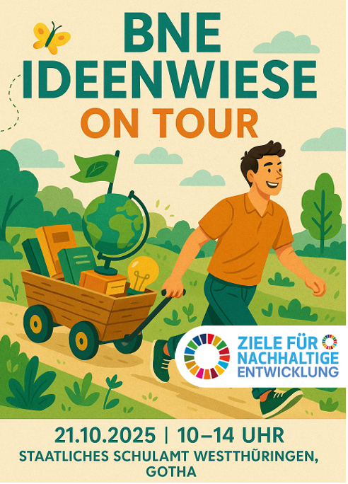 Die „Ideenwiese on tour" bietet die Gelegenheit, neue BNE-Impulse für die schulische Arbeit zu sammeln, Kooperationen anzubahnen und die Bandbreite an BNE-Bildungsmöglichkeiten in Thüringen kennenzulernen.