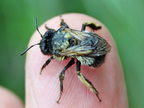 Gehörnte Mauerbiene auf einer Apfelblüte