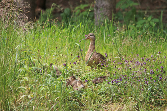 Stockenten mit Küken