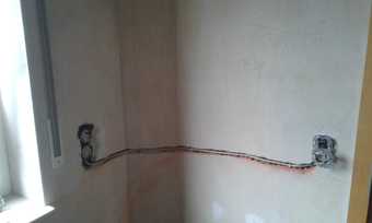 Das Foto gehört zur Serie "Elektrik". Abgebildet ist die Verlängerung einer Steckdose-Schalter-Kombination zu einer weiteren Doppelsteckdose. Es gelten die Nutzungsbedingungen der Mediothek und Pixiothek.