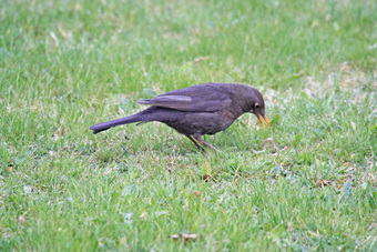 Das Foto hehört zur Serie "Amseln". Es zeigt eine Amsel (Turdus merula), auch Schwarzdrossel genannt, eine Vogelart der Familie der Drosseln. Die Männchen sind schwarz gefärbt und haben einen gelben Schnabel, das Gefieder der Weibchen ist größtenteils dunkelbraun. Es gelten die Nutzungsbedingungen der Mediothek und Pixiothek.
