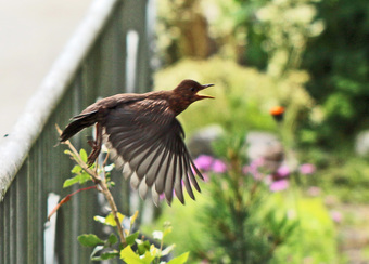 Das Foto hehört zur Serie "Amseln". Es zeigt eine junge Amsel im Flug (Turdus merula), auch Schwarzdrossel genannt. Es gelten die Nutzungsbedingungen der Mediothek und Pixiothek.