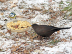 Amselmännchen und Jungvogel