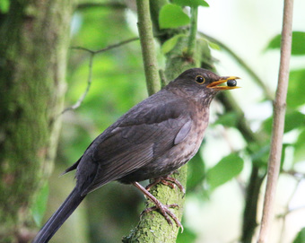 Das Foto hehört zur Serie "Amseln". Es zeigt eine Amsel (Turdus merula), auch Schwarzdrossel genannt, eine Vogelart der Familie der Drosseln. Die Männchen sind schwarz gefärbt und haben einen gelben Schnabel, das Gefieder der Weibchen ist größtenteils dunkelbraun. Es gelten die Nutzungsbedingungen der Mediothek und Pixiothek.