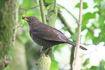 Das Foto hehört zur Serie "Amseln". Es zeigt eine Amsel (Turdus merula), auch Schwarzdrossel genannt, eine Vogelart der Familie der Drosseln. Die Männchen sind schwarz gefärbt und haben einen gelben Schnabel, das Gefieder der Weibchen ist größtenteils dunkelbraun. Es gelten die Nutzungsbedingungen der Mediothek und Pixiothek.
