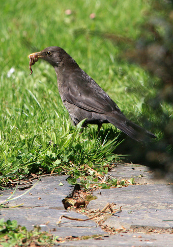 Das Foto hehört zur Serie "Amseln". Es zeigt eine Amsel (Turdus merula), auch Schwarzdrossel genannt, eine Vogelart der Familie der Drosseln. Die Männchen sind schwarz gefärbt und haben einen gelben Schnabel, das Gefieder der Weibchen ist größtenteils dunkelbraun. Es gelten die Nutzungsbedingungen der Mediothek und Pixiothek.