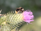 Das Foto hehört zur Serie "Hummeln". Es zeigt eine Steinhummel (Bombus lapidarius). Steinhummeln sind größtenteils schwarz, das Ende des Hinterleibs ist braunrot. Männliche Steinhummeln haben eine gelbe Binde auf der Brust. Ihre Nester legen sie unter Steinhaufen oder Mauern an. Es gelten die Nutzungsbedingungen der Mediothek und Pixiothek.
