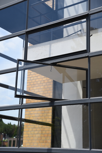 Das Foto gehört zu einer Serie mit Abbildungen der Bauhaus Industriearchitektur.