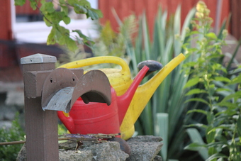 Gießkannen im Garten