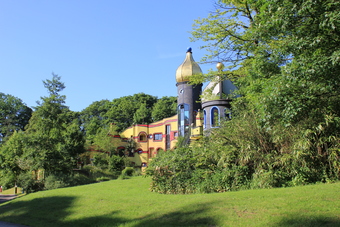 Das Foto zeigt eine Ansicht vom Hundertwasserhaus im Grugapark Essen. Das Bild ist unter CC0 lizenziert und kann somit frei verwendet werden.