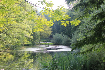 Das Bild zeigt einen Teich im Wald, in dem sich die Äste der Bäume spiegeln. Das Bild ist unter CC0 lizenziert und kann somit frei verwendet werden.