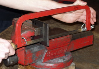 Das Bild gehört zur Serie "Werkzeuge". Es zeigt die Verwendung einer Metallbügelsäge beim Bearbeiten einer im Schraubstock eingespannten Metallplatte. Das Bild ist unter CC0 lizenziert und kann somit frei verwendet werden.