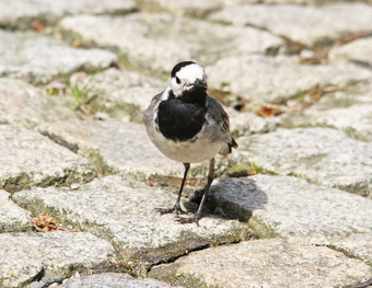 Das Foto gehört zur Serie "Stelzen und Pieper". Es zeigt eine Bachstelze (Motacilla alba). Sie fällt durch ihr kontrastreiches, schwarz-weiß-graues Gefieder und den stelzentypischen Wippschwanz auf. Es gelten die Nutzungsbedingungen der Mediothek und Pixiothek.