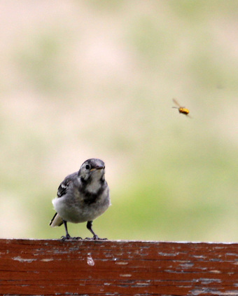 Das Foto gehört zur Serie "Stelzen und Pieper". Es zeigt eine Bachstelze (Motacilla alba). Sie fällt durch ihr kontrastreiches, schwarz-weiß-graues Gefieder und den stelzentypischen Wippschwanz auf. Es gelten die Nutzungsbedingungen der Mediothek und Pixiothek.