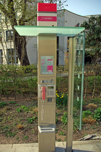 Das Foto zeigt eine öffentliche Telefonzelle, mit der Nutzer nach Einwurf von Münzen über das Festnetz telefonieren können. Das Bild ist unter CC0 lizenziert und kann somit frei verwendet werden.