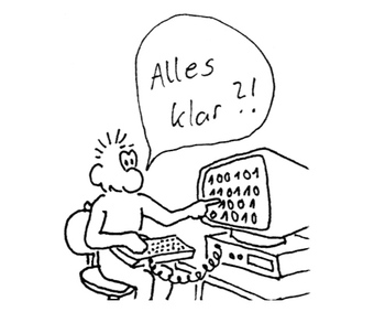Das Bild gehört zur Serie "Paul". Es zeigt Paul am Computer mit Binärzahlen auf dem Bildschirm. Das Bild ist unter CC0 lizenziert und kann somit frei verwendet werden.
