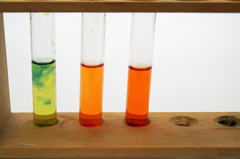 Das Foto gehört zur Serie "Experimente Chemie". Es zeigt den Vergleich von flüssigen Chemikalien in einem Reagenzglasständer. Das Bild ist unter CC0 lizenziert und kann somit frei verwendet werden.