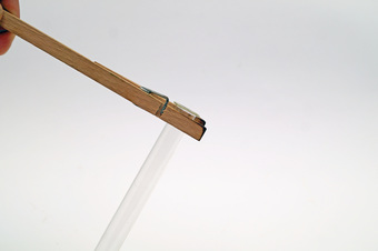 Reagenzglasklammer immer oben am Rand befestigen.