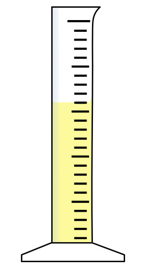 Messzylinder (klein) mit gelber Flüssigkeit
