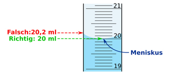 Das Bild gehört zur Serie "Chemie Grafiken". Es veranschaulicht das richtige Ablesen vom Flüssigkeitsstand in einem Messzylinerer unter Beachtung des Meniskus. Das Bild ist unter CC0 lizenziert und kann somit frei verwendet werden.
