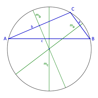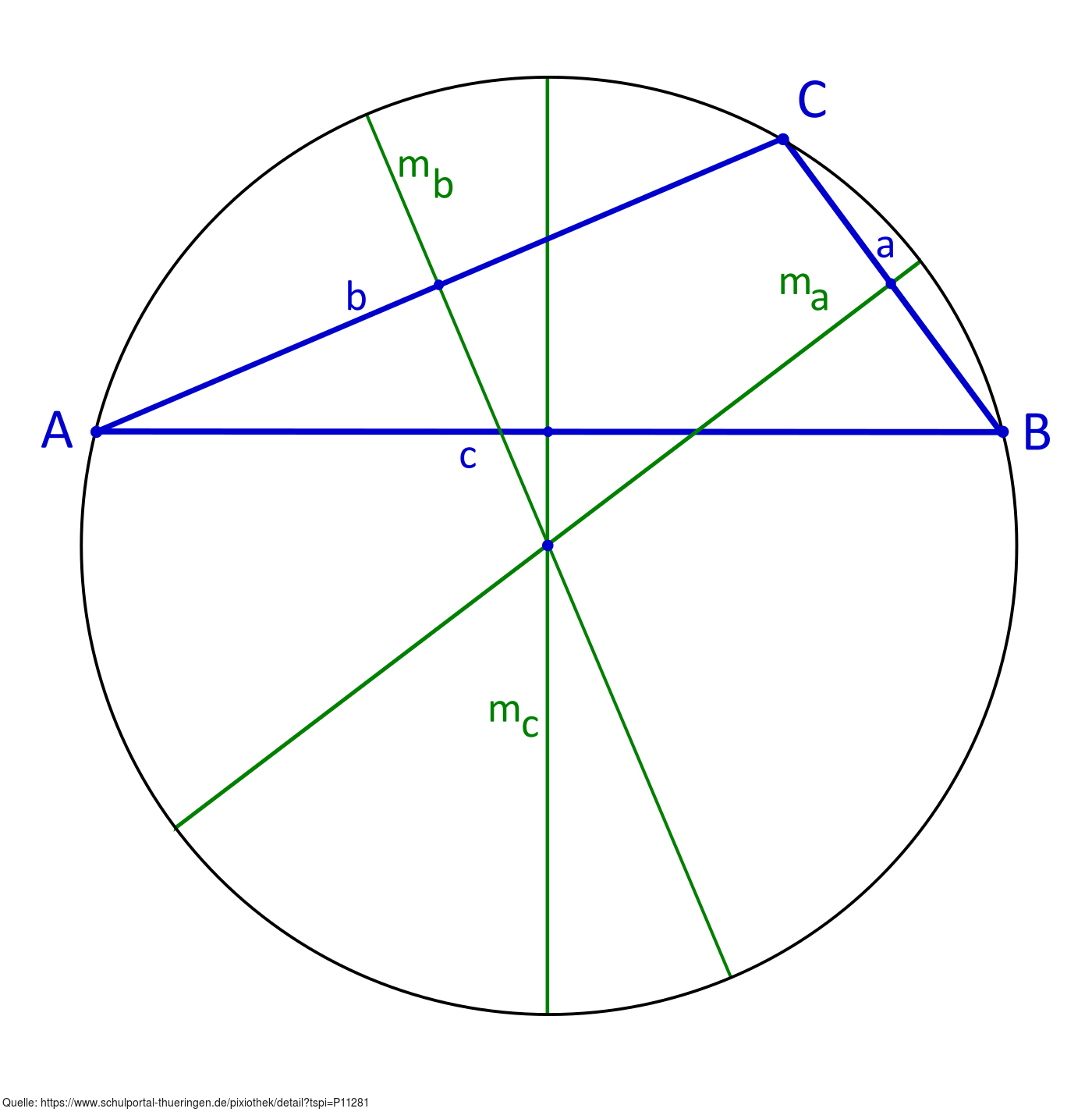 Das Bild gehört zur Serie "Mathematik Geometrie". Es zeigt die drei Mittelsenkrechten in einem stumpfwinkligen Dreieck. Die Mittelsenkrechten schneiden sich in einem Punkt. Das ist der Mittelpunkt vom Umkreis des Dreiecks. Das Bild ist unter CC0 lizenziert und kann somit frei verwendet werden.