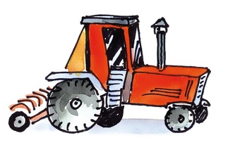 Das Bild hat den Namen "Agrarwirtschaft" und zeigt einen gezeichneten Traktor bei der Feldarbeit. Es gelten die Nutzungsbedingungen der Mediothek und Pixiothek.