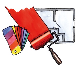 Das Bild gehört zur Serie "Schulfächer". Es zeigt gezeichnete Geräte als Symbolbild für das Berufsfeld Farbtechnik-Raumgestaltung. Es gelten die Nutzungsbedingungen der Mediothek und Pixiothek.