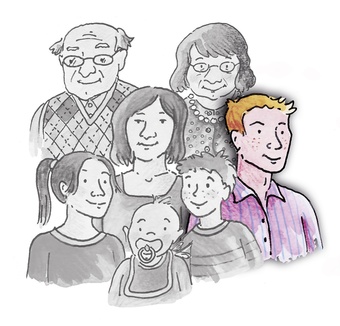 Das Bild gehört zur Serie "Familienmitglieder als Zeichnung". Es zeigt den Vater im Kreise seiner Familie. Es gelten die Nutzungsbedingungen der Mediothek und Pixiothek.