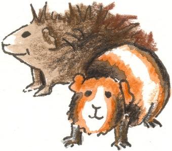 Das Bild gehört zur Serie "Haustiere". Es zeigt gezeichnete Meerschweinchen bzw. Hausmeerschweinchen. Es gelten die Nutzungsbedingungen der Mediothek und Pixiothek.