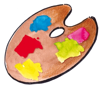 Das Bild gehört zur Serie "Schulfächer". Es zeigt ein gezeichnetes Symbolbild für das Unterrichtsfach Kunsterziehung. Es gelten die Nutzungsbedingungen der Mediothek und Pixiothek.