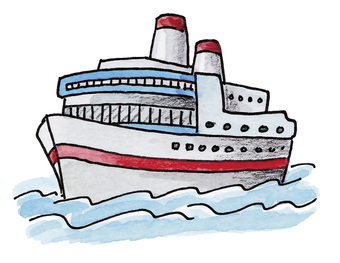 Das Bild gehört zur Serie "Schifffahrt". Es zeigt ein gezeichnetes Schiff auf dem Meer. Es gelten die Nutzungsbedingungen der Mediothek und Pixiothek.