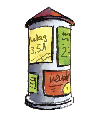 Das Bild gehört zur Serie "Unterricht". Es zeigt eine gezeichnete Litfaßsäule als Symbolbild für Informationen. Es gelten die Nutzungsbedingungen der Mediothek und Pixiothek.