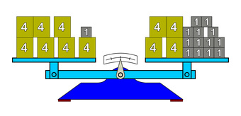 Das Bild gehört zur Serie "Mathematik, Gleichungen". Es veranschaulicht die Probe für die Lösung der linearen Gleichung 23. Durch Einsetzen der gefundenen Lösung für die Variable x entsteht im Bild auf beiden Seiten der Waage die gleiche Summe. Das Bild ist unter CC0 lizenziert und kann somit frei verwendet werden.