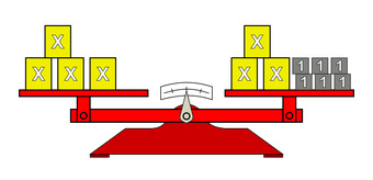 Das Bild gehört zur Serie "Mathematik, Gleichungen". Es veranschaulicht die Lösung einer linearen Gleichung durch Äquivalenzumformung mit dem Bild einer Waage. Zur Gleichung 24 veranschaulichen die Bilder 24-1 bis 24-3 die Umformungsschritte. Das Bild ist unter CC0 lizenziert und kann somit frei verwendet werden.