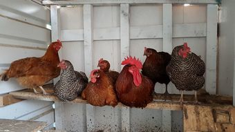 Das Foto gehört zur Serie "Bauernhof". Es zeigt Hühner im Hühnerstall. Es gelten die Nutzungsbedingungen der Mediothek und Pixiothek.