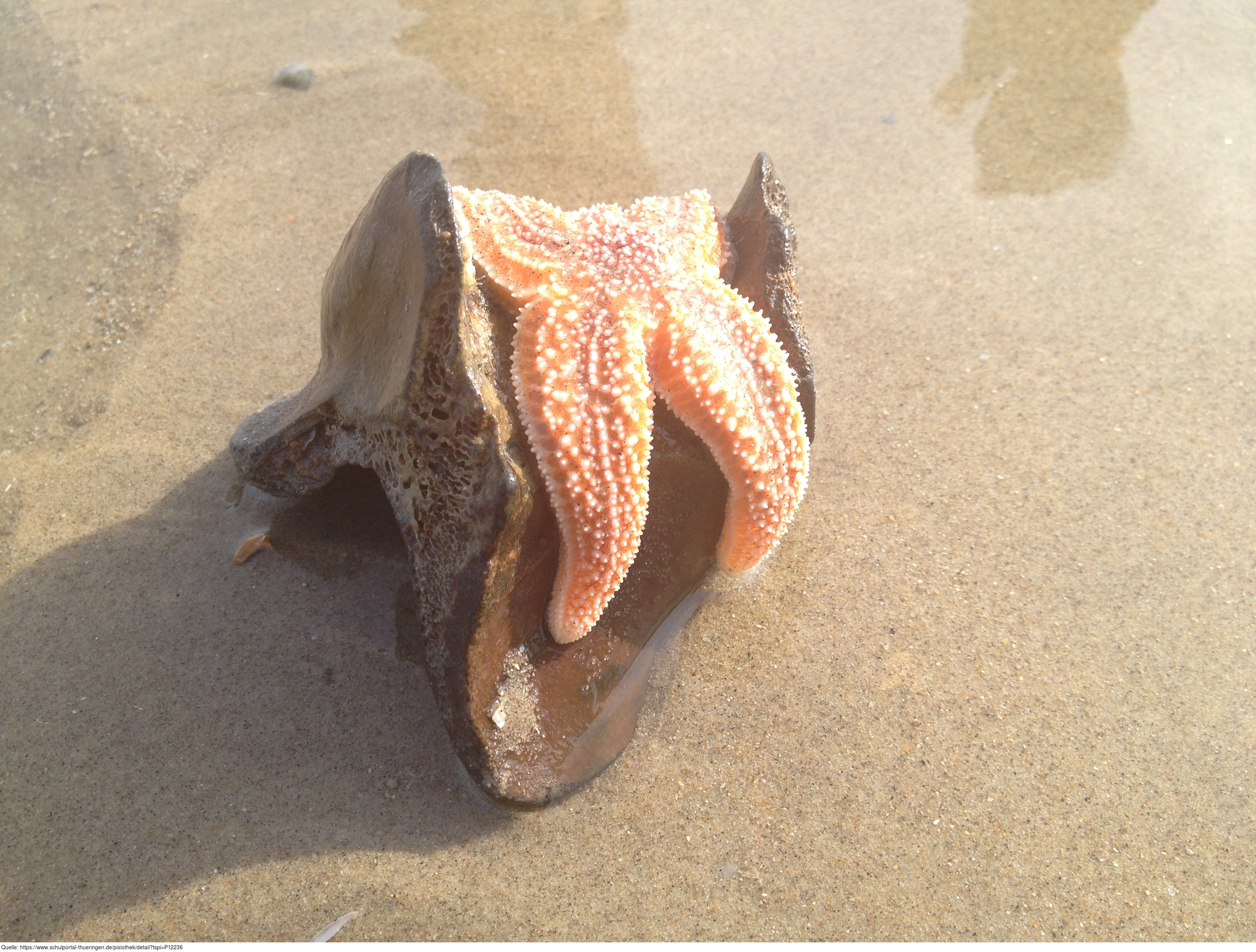 Das Foto zeigt einen Seestern am Strand. Es gelten die Nutzungsbedingungen der Mediothek und Pixiothek.