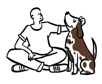 Die Zeichnung "doggy" aus der Serie "Open Doodles" zeigt einen Mann, der einen Hund über den Kopf streicht. Das Bild ist unter CC0 lizenziert und kann somit frei verwendet werden.
