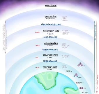 Die Zeichnung verdeutlicht den Aufbau der Atmosphäre. Es gelten die Nutzungsbedingungen der Mediothek und Pixiothek.