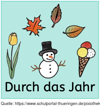 Das Bild gehört zur Serie "Schulfächer". Es zeigt ein Symbolbild für "durch das Jahr", Jahreszeiten, Jahreslauf u.a..