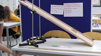 Das Video zeigt ein Experiment zur Abhängigkeit der Zugkräfte an der geneigten Ebene von deren Neigungswinkel. Das Video ist unter CC0 lizenziert und kann somit frei verwendet werden.