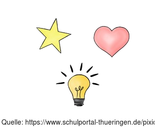 Das Bild zeigt Symbolbilder für Stern, Herz, Glühlampe. Das Bild ist unter CC0 lizenziert und kann somit frei verwendet werden. Es ist neben weiteren Bildern auch hier zu finden: https://moodlelab.moodleschule.de/