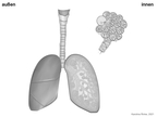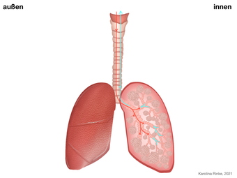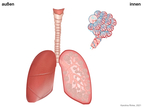 Das Bild gehört zur Serie "Organe des Menschen". Das Bild verdeutlicht den Aufbau der menschlichen Lunge. Bild-Variante: Lunge mit Luftkreislauf; farbig; unbeschriftet. Es gelten die Nutzungsbedingungen der Mediothek und Pixiothek.