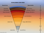 Das Bild verdeutlicht den Schalenaufbau der Erde. Bild-Variante: farbig; beschriftet. Es gelten die Nutzungsbedingungen der Mediothek und Pixiothek.