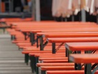 Das Bild gehört zur Serie "Jakobsweg - Camino Francés". Abgebildet sind zahlreiche Bierflaschen, in einem "Biergarten" an Wegesrand. Es gelten die Nutzungsbedingungen der Mediothek und Pixiothek.