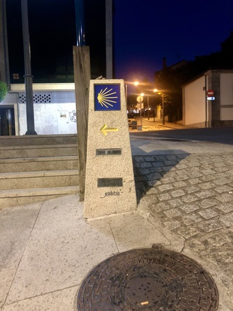 Das Bild gehört zur Serie "Jakobsweg - Camino Francés". Abgebildet ist ein Wegweiser am Pilgerweg. Es gelten die Nutzungsbedingungen der Mediothek und Pixiothek.