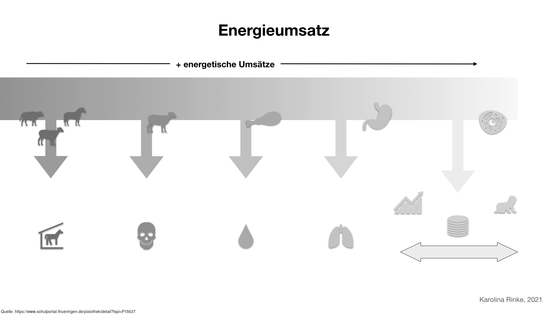 Das Bild verdeutlicht Nahrungs- und Energieumsatz von Lebewesen in Ökosystemen. Variante: s/w; unbeschriftet; bebildert. Es gelten die Nutzungsbedingungen der Mediothek und Pixiothek.